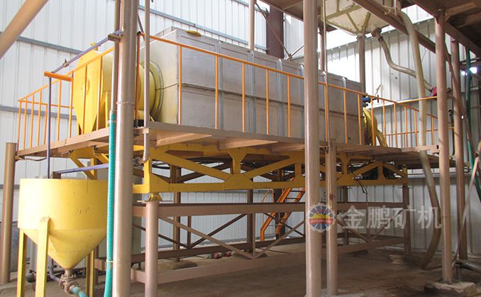 礦漿經高效改造化濃密機濃縮,溢流水流入循環水池,底流經膠泵打入到浸出槽,同時加入浸出藥劑,先經過兩個浸出槽的預浸再進行活性炭吸附,活性炭浸出槽加入,逐步逆流串炭到前面的浸出槽中,含金達到要求時由用空氣提升器提到振動篩進行炭漿分離,礦漿回到浸出槽,載金炭送去解吸電解系統。