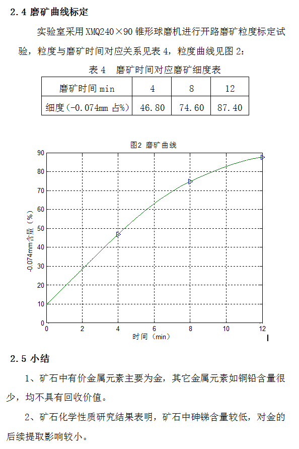 原礦化學性質測定包括原礦多元素分析(確定礦石能否綜合回收利用)、 原礦粒級篩分分析、原礦密度測定、原礦相對可磨度測定。以下是對客 戶的礦樣進行測定后的相關圖表。