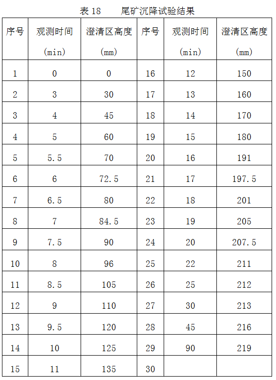 尾礦沉淀實驗結果