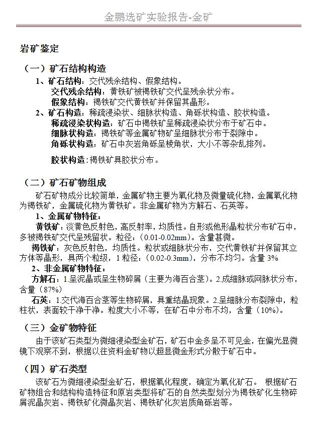 原礦物質成分測定包括分析礦石的結構構造、礦石礦物組成、 主要金屬與非金屬礦物特征、礦石類型。以下是對一金礦客戶 提供礦樣原礦物質成分測定的內容。