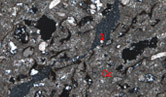 • 褐鐵礦呈細脈分布于裂隙中